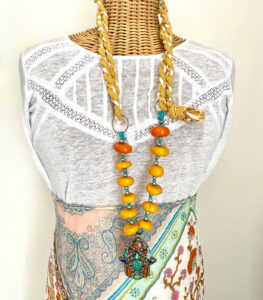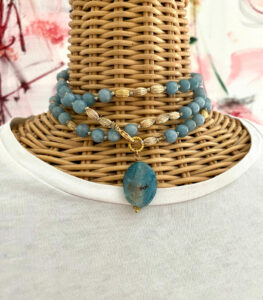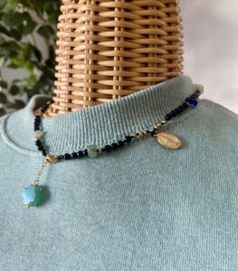 Ogni pezzo è una creazione unica, realizzata a mano con materiali di alta qualità — perle naturali, corallo, turchese, acciaio inox e medaglie dipinte. Dalla cura del dettaglio alla personalizzazione, ogni bijoux racconta la tradizione e la raffinatezza dell’artigianato salentino.