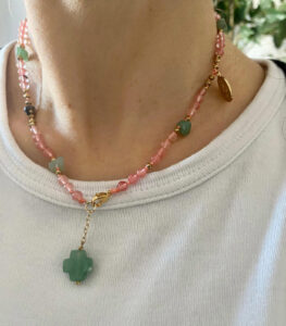 Ogni pezzo è una creazione unica, realizzata a mano con materiali di alta qualità — perle naturali, corallo, turchese, acciaio inox e medaglie dipinte. Dalla cura del dettaglio alla personalizzazione, ogni bijoux racconta la tradizione e la raffinatezza dell’artigianato salentino.