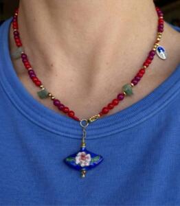 Ogni pezzo è una creazione unica, realizzata a mano con materiali di alta qualità — perle naturali, corallo, turchese, acciaio inox e medaglie dipinte. Dalla cura del dettaglio alla personalizzazione, ogni bijoux racconta la tradizione e la raffinatezza dell’artigianato salentino.