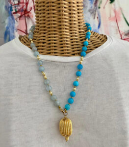 Ogni pezzo è una creazione unica, realizzata a mano con materiali di alta qualità — perle naturali, corallo, turchese, acciaio inox e medaglie dipinte. Dalla cura del dettaglio alla personalizzazione, ogni bijoux racconta la tradizione e la raffinatezza dell’artigianato salentino.