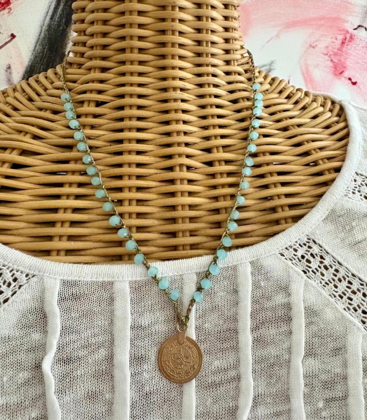 | collana moneta | celeste, bluelettrico, verdescuro |