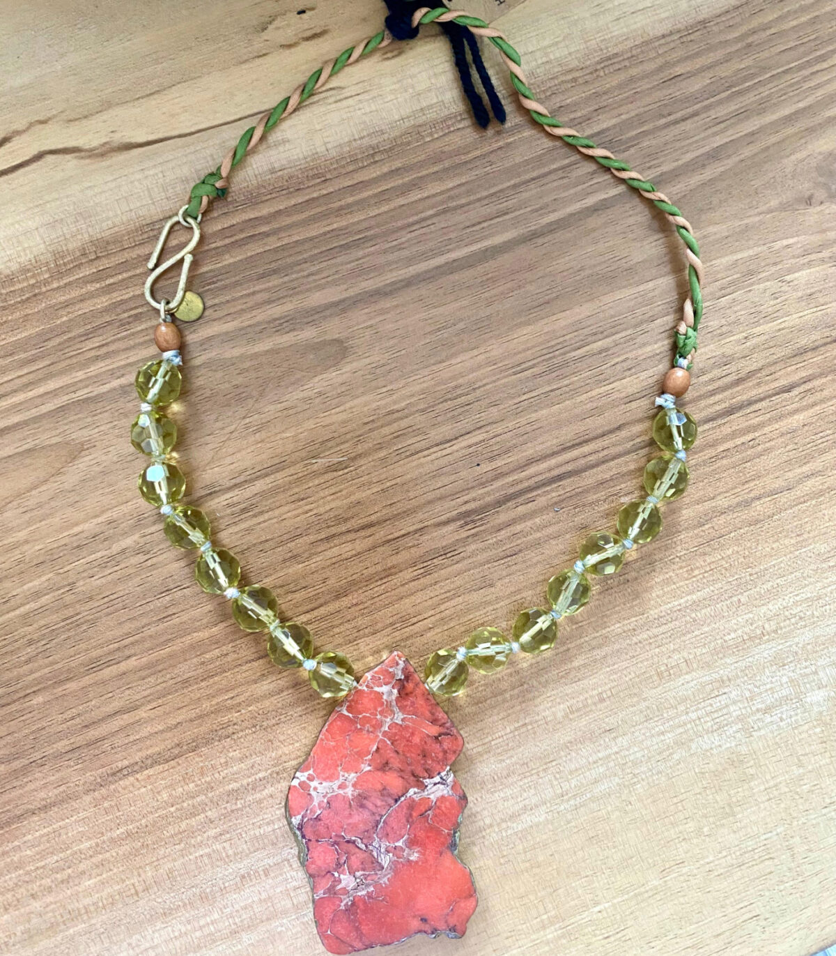 il cordone in seta intrecciato a mano  rende la collana leggera