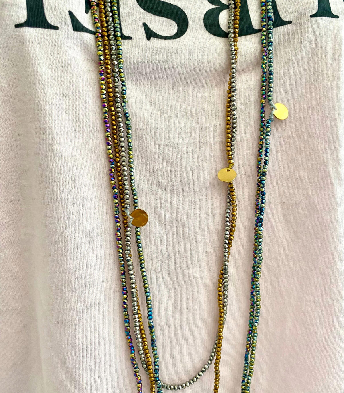 collana microcristalli silver, gold, nero-insertigold, multicolor, azzurro-verde